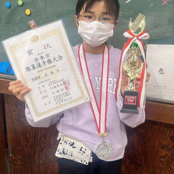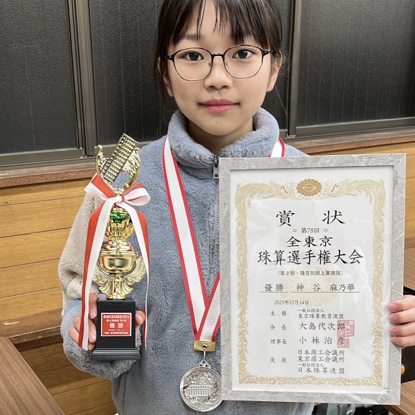 検定/大会 第78回 全東京珠算選手権大会の結果 12/14日曜 冷たい雨降る中.全東京珠算大会が開催されました! この2か月.沢山の練習をしてきました!頑張ったね(^^♪ 結果は。。。 1部 総合団体競技 優勝 2部 総合団体競技 準優勝 3部 総合団体競技 3位 2部 読み上げ算競技 優勝 神谷麻乃華さん 2部 読み上げ算競技 準優勝 藺草怜さん 2部 総合個人競技 準優勝 佐藤杏さん レベルの高い大会で結果を残せて、素晴らしいのひと言です! PREV